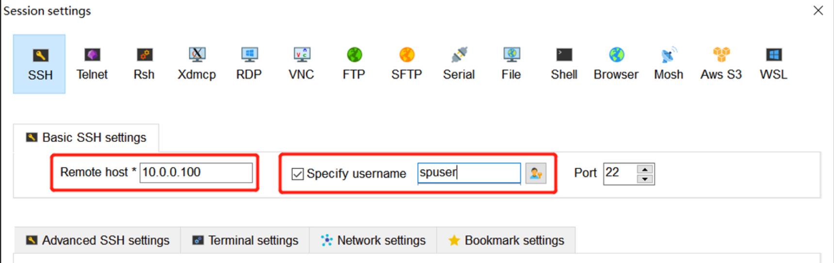 2. For Windows, we recommend using the mobaxterm tool Remote Workstation. Commands can be used: ssh -XY username@workstation_IP, or sessions can be saved for later opening.